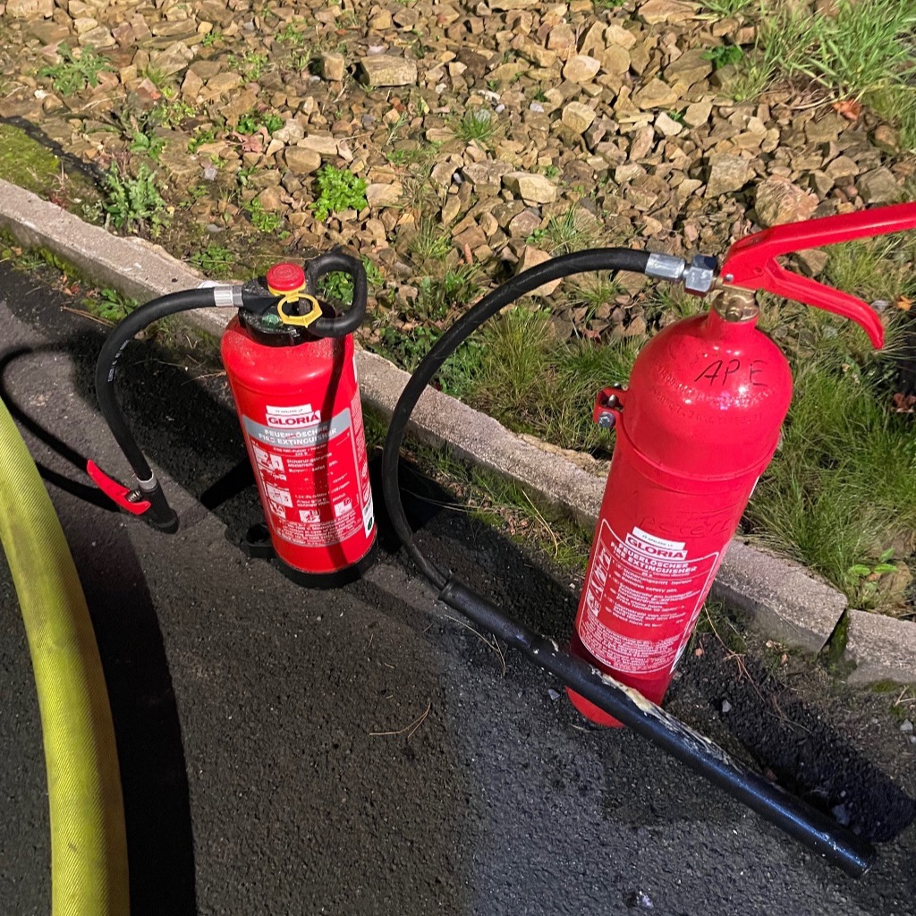 Vor Ort bestätigte sich der Brand, woraufhin umgehend ein Löschangriff unter Atemschutz eingeleitet wurde. Der betroffene Bereich konnte rasch mit einem Feuerlöscher unter Kontrolle gebracht werden. Parallel dazu kontrollierten weitere Einsatzkräfte die Umgebung auf Glutnester. Mithilfe eines C-Rohres wurden letzte Brandreste abgelöscht.