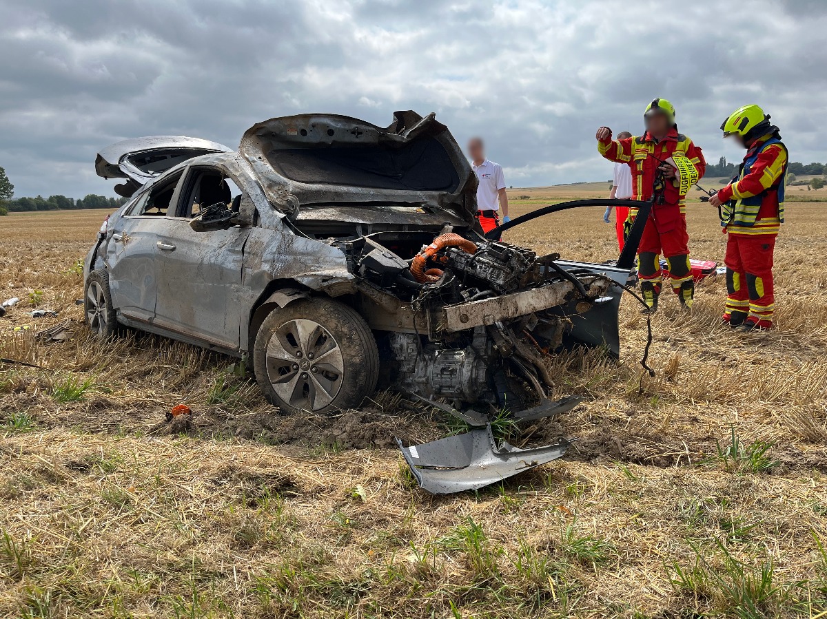 Da es sich um ein Elektrofahrzeug handelte, kontrollierten wir die Batterie vorsorglich mit der Wärmebildkamera auf mögliche Temperaturanstiege. Zudem stellten wir den Brandschutz sicher und unterstützten bei der Patientenbeförderung.