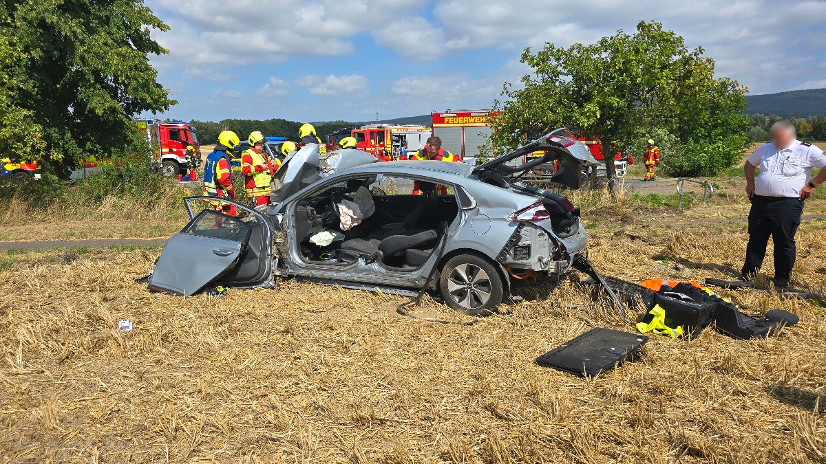 Ein PKW war von der Fahrbahn abgekommen, gegen einen Baum geprallt und anschließend auf einem angrenzenden Feld zum Stehen gekommen.