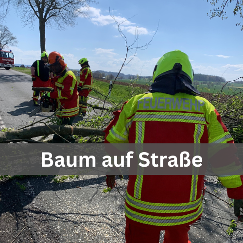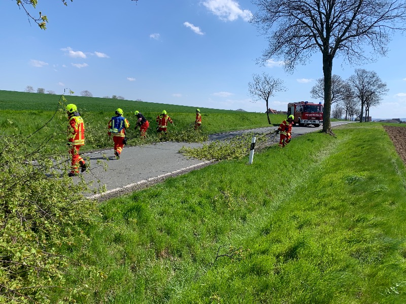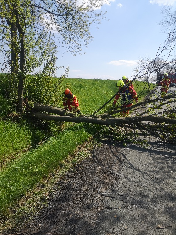 Bei bestem Wetter konnten wir den Baum zersägen und beiseite schaffen. Nach ca. 30 min war der Einsatz beendet und die Straße konnte von der Polizei freigegeben werden.