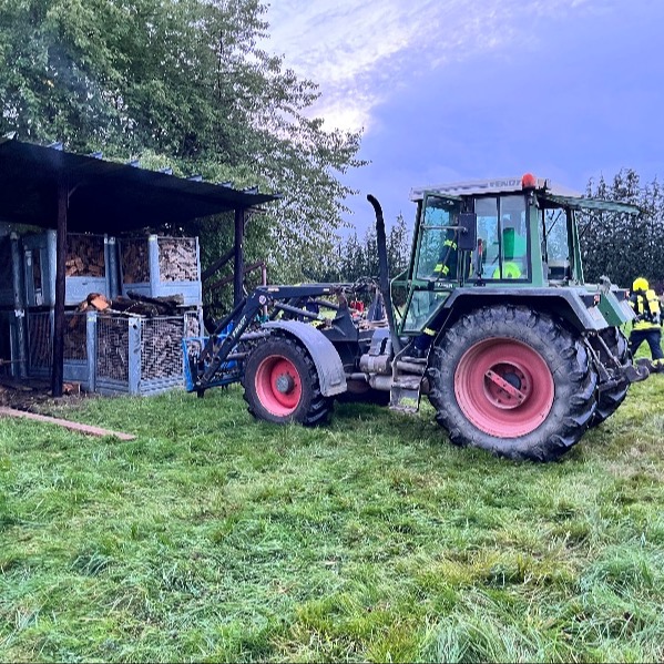 Durch den Einsatz eines Traktors konnten die Holzboxen einzeln entfernt und umgekippt werden, was es uns ermöglichte, Glutnester zu identifizieren und effektiv zu löschen.