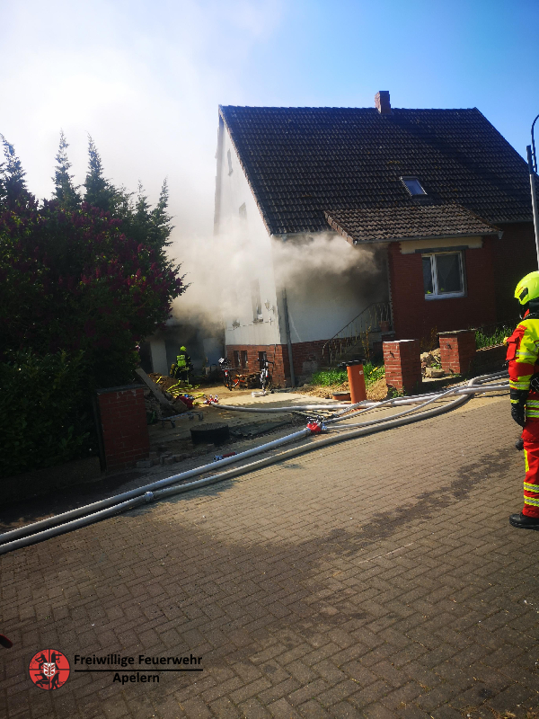 Am Einsatzort angekommen, sahen wir schon Qualm aus dem Objekt steigen.