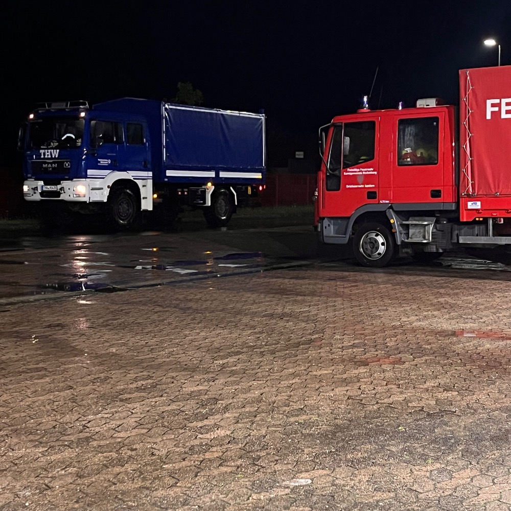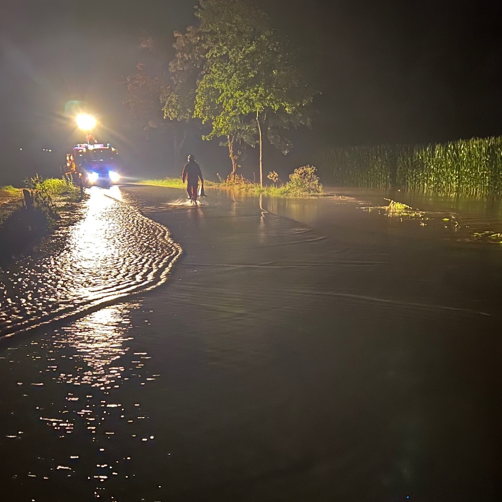 In der Nacht von Samstag auf Sonntag wurden wir erneut von heftigem Starkregen überrascht. Kurz nach Mitternacht erhielten wir den Einsatzbefehl "Gerätehaus besetzen". Nach einer kurzen Wartezeit trafen die ersten Anweisungen der Einsatzleitung Ort (ELO) ein.