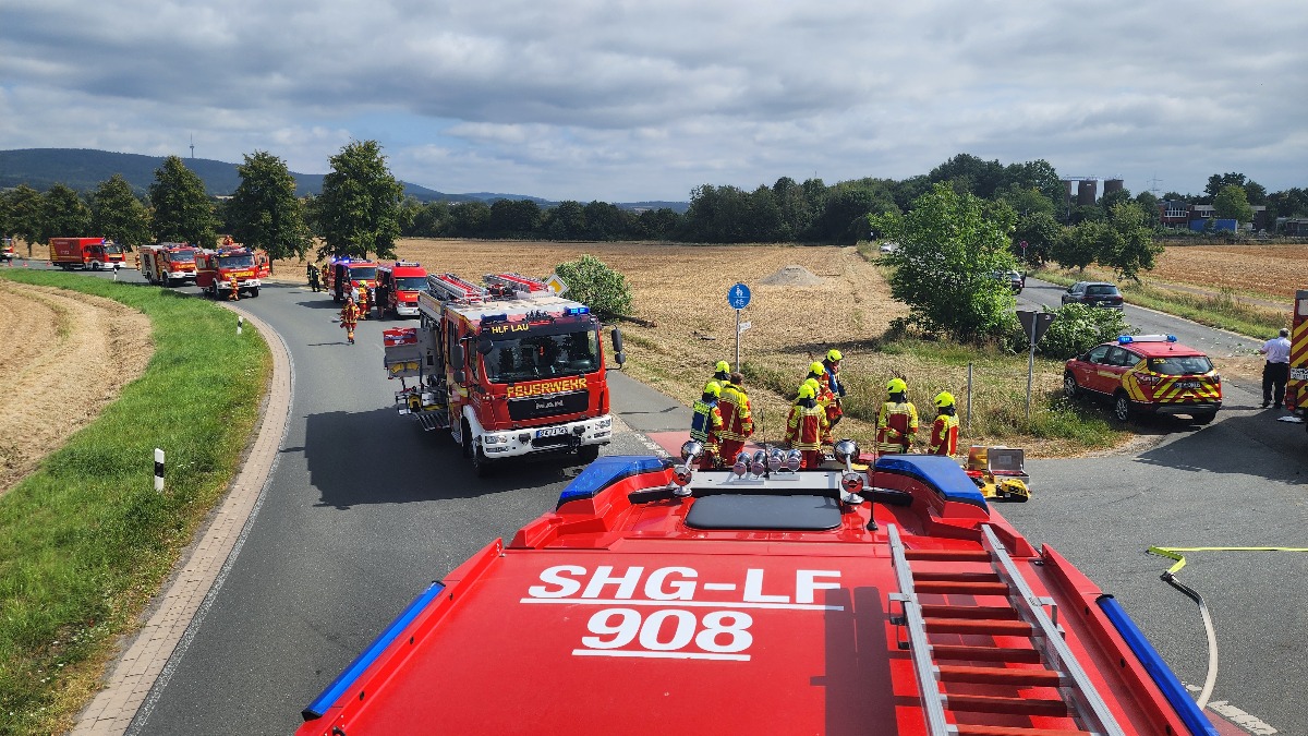 Die Feuerwehr Rodenberg öffnete das Fahrzeug großflächig, um die eingeklemmte Person zu befreien. Im Anschluss wurde der Patient mit dem Rettungshubschrauber Christoph 4 in eine Klinik geflogen.