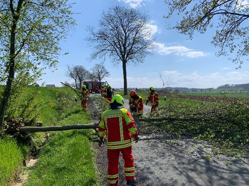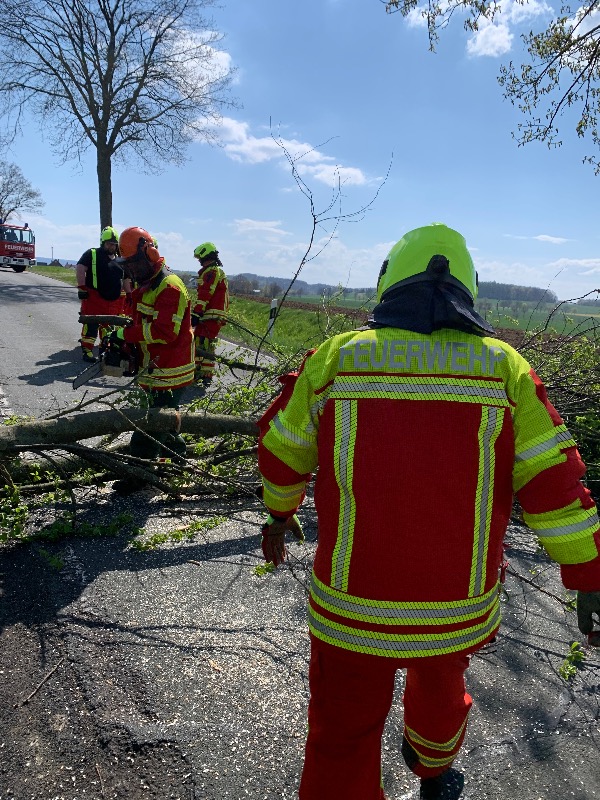Bei bestem Wetter konnten wir den Baum zersägen und beiseite schaffen. Nach ca. 30 min war der Einsatz beendet und die Straße konnte von der Polizei freigegeben werden.