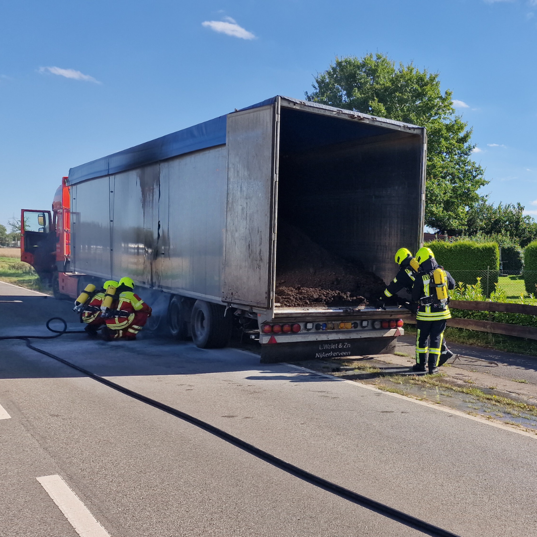 Gegen 16:30 Uhr erfolgte die Alarmierung unserer Feuerwehr mit dem Einsatzstichwort "Fahrzeugbrand groß" zur Ortsausfahrt Apelern. Vor Ort bot sich eine deutliche Szenerie: Ein ausgeprägtes Feuer hatte sich am LKW-Anhänger entfacht.
